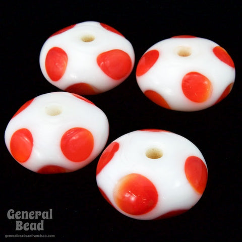 8mm x 12mm white rondelle with red dots.