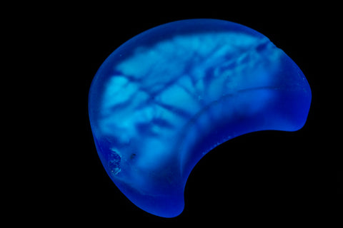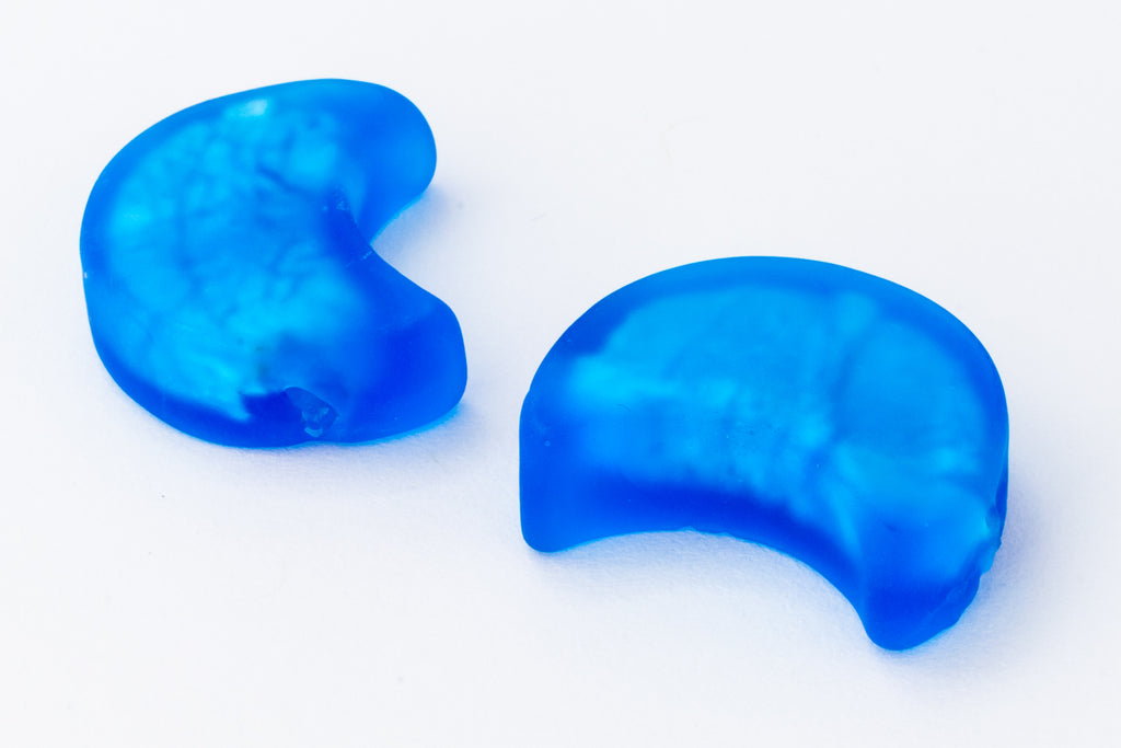 12mm x 20mm silver foil blue crescent moon beads with vertical hole.