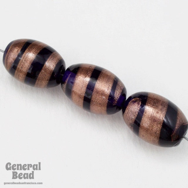 13mm x 18mm cobalt oval with metallic bronze spiraling stripe.