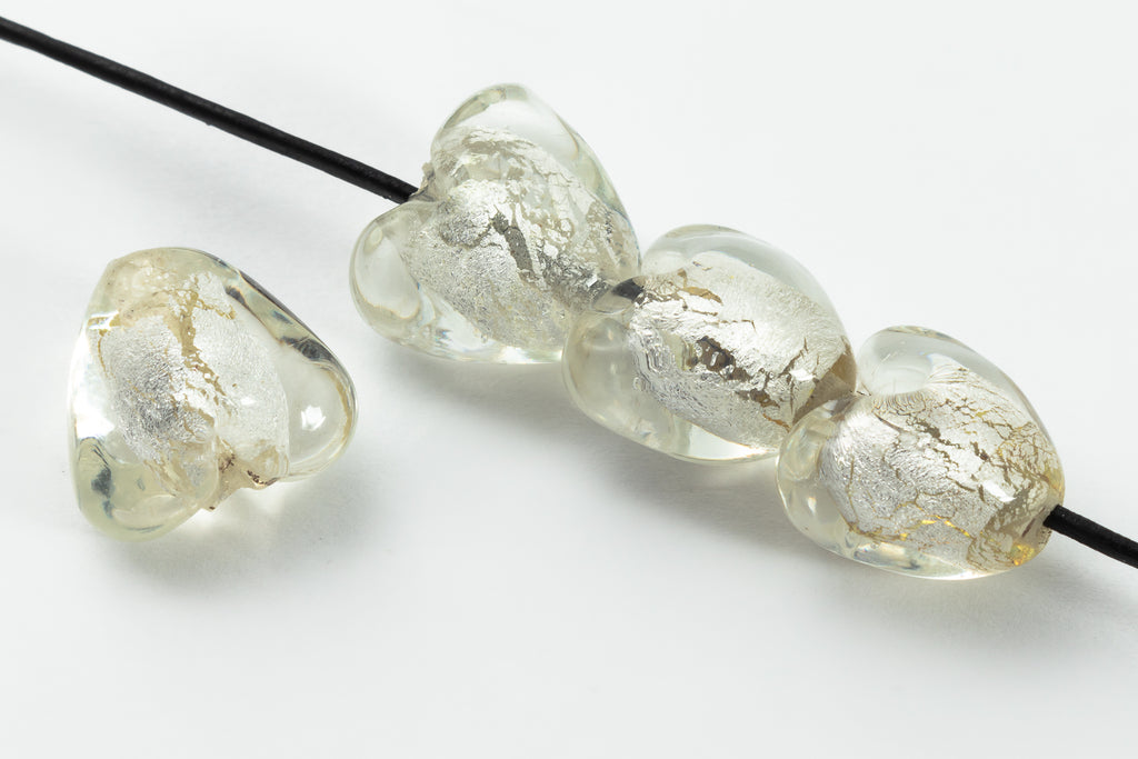 14mm transparent crystal heart with silver foil lining and vertical hole.