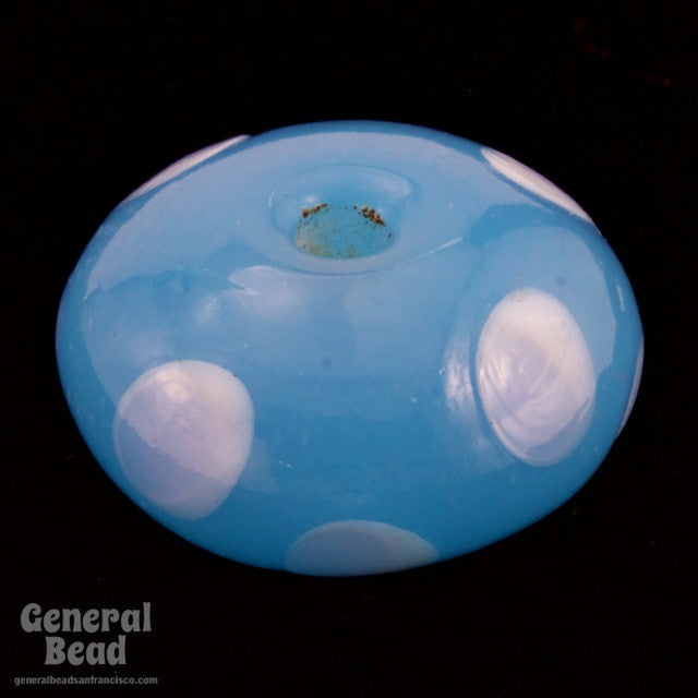 10mm x 15mm opaque aqua rondelle with white dots and 1mm hole.