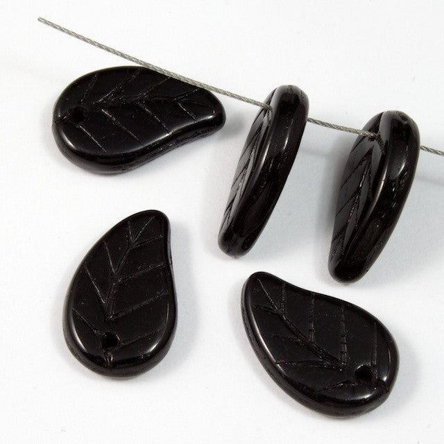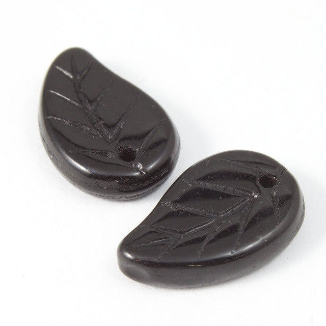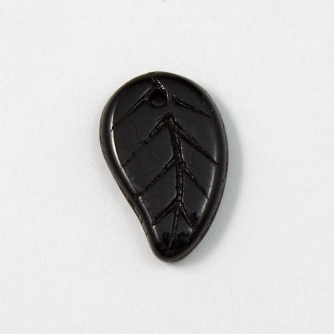 8mm x 15mm opaque black leaf pendant with hole at top.