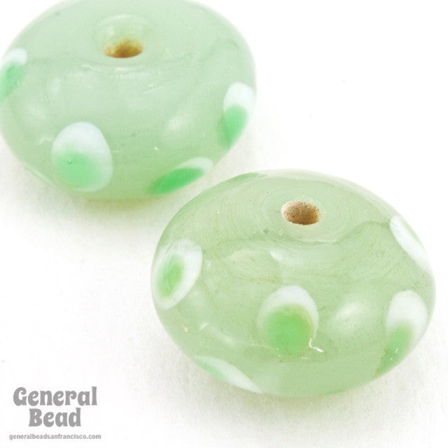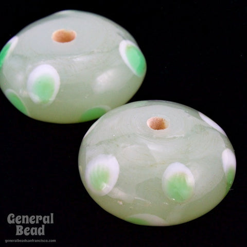 15mm Light Green Rondelle with White and Green Dots (8 Pcs) #4493