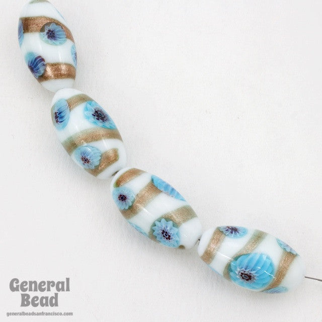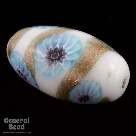 15mm x 25mm opaque white oval with sparkling bronze spiral and pale blue flowers.