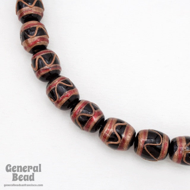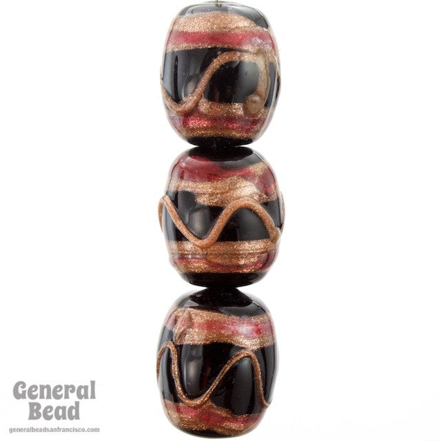 16mm Black and Gold Lampwork Oval Bead (6 Pcs) #4502