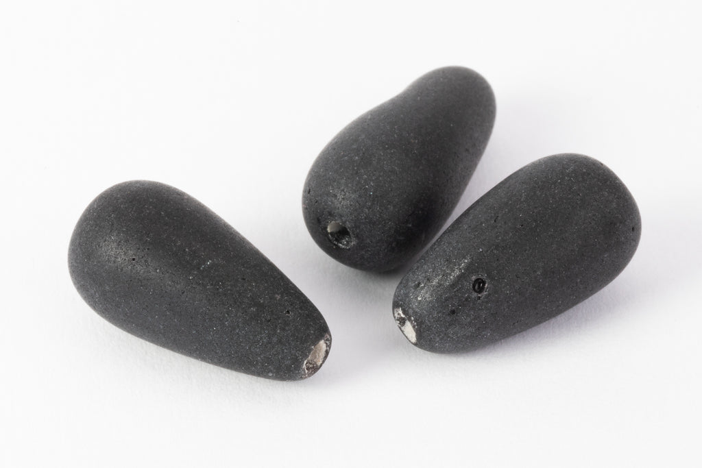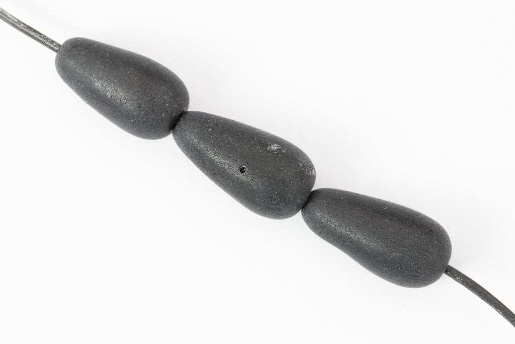 17mm opaque matte black teardrop with lengthwise hole.