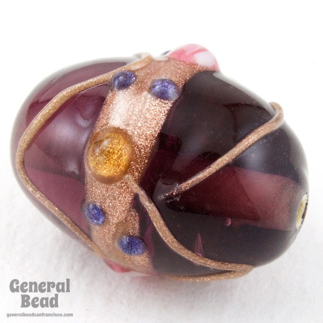 15mm x 18mm transparent amethyst oval with glittering bronze band and pink lampwork decoration.