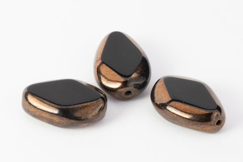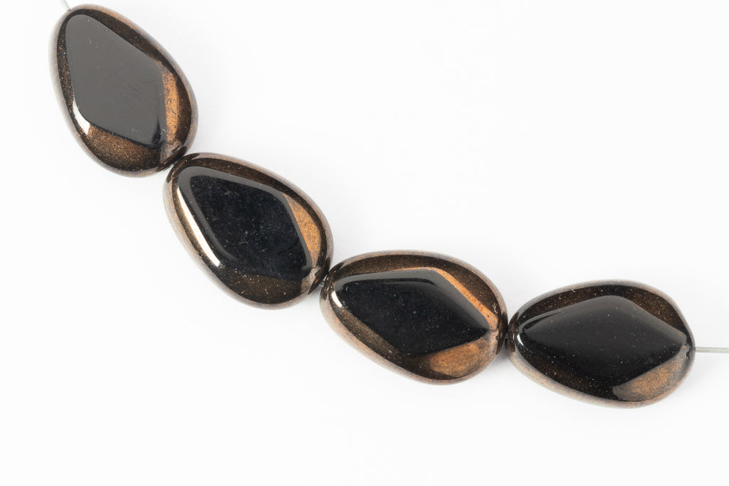 12.2mm x 17.74mm opaque black table cut teardrop bead with metallic bronze finish.