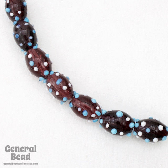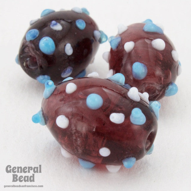 15mm x 20mm transparent amethyst oval bead with raised white and blue dots.