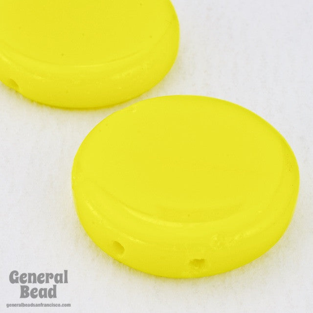 20mm opaque primary yellow flat disc with two holes.