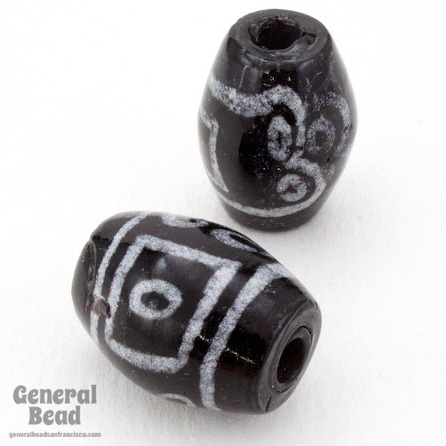 25mm x 30mm black glass barrel with traditional Indian design in white.