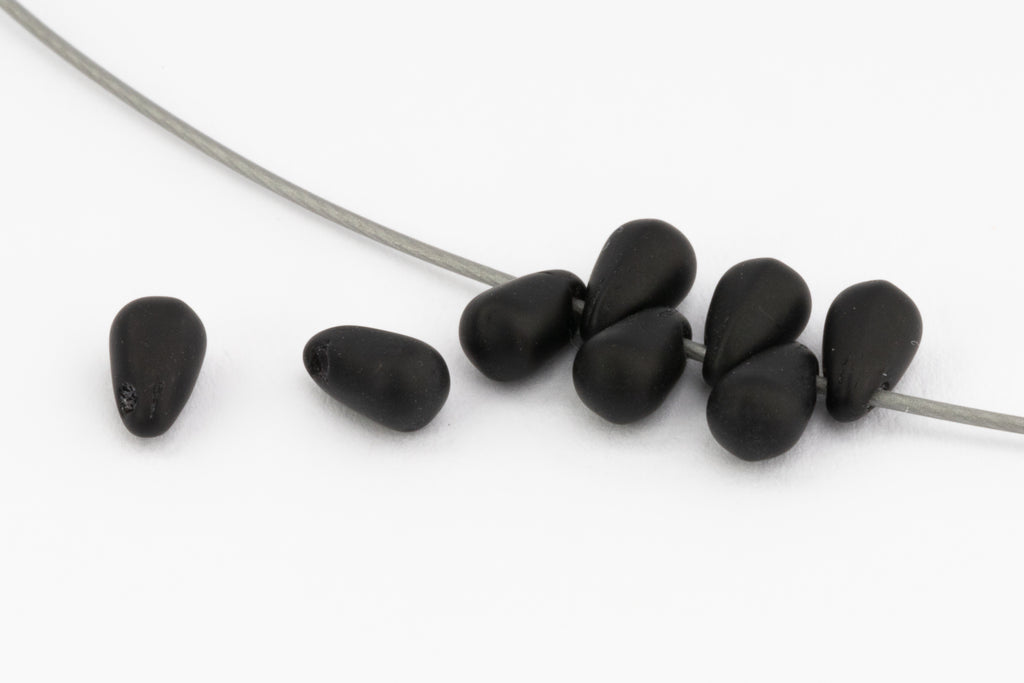 3mm x 5mm matte black teardrop with top drilled hole.