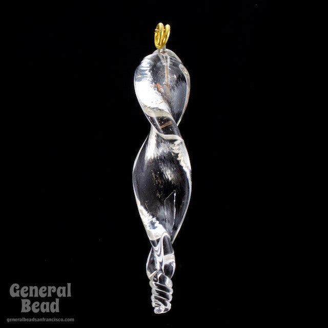 40mm - 50mm transparent clear glass twisted "icicle" with brass loop at top.