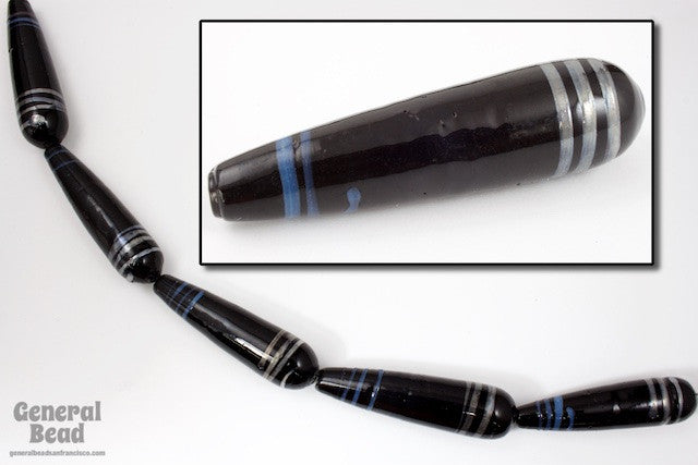 15mm x 42mm opaque black teardrop with silver stripes and 1mm vertical hole.
