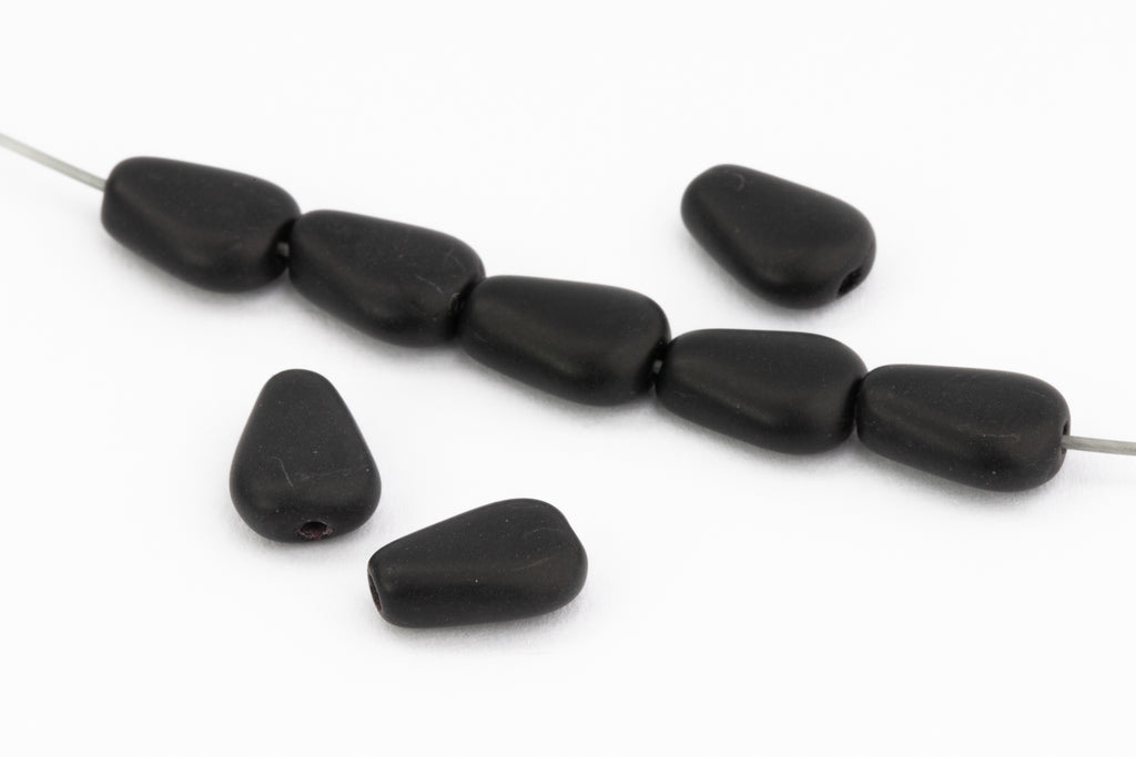 5.5mm x 8.41mm matte black flattened teardrop with vertical hole.