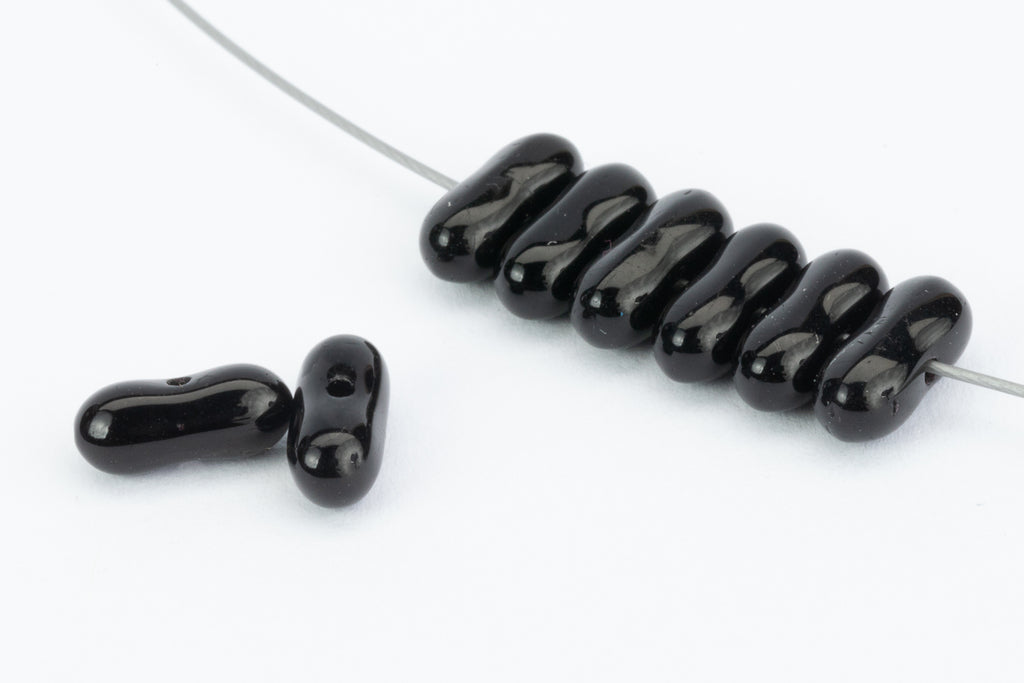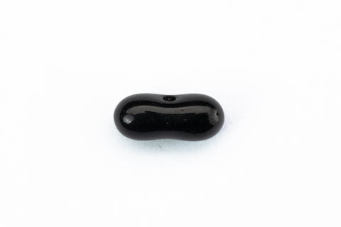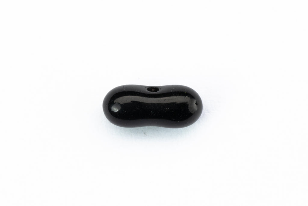 4mm x 9.21mm opaque black peanut shape bead with center hole.