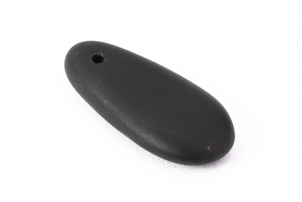 8.6mm x 19mm matte black flattened teardrop with front drilled hole.