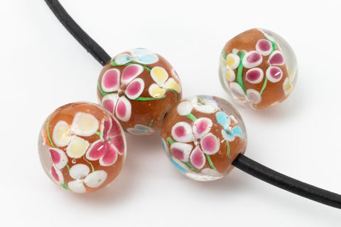 16mm Topaz Lampwork Round Bead with Pastel Flowers (2 Pcs) #LCG008