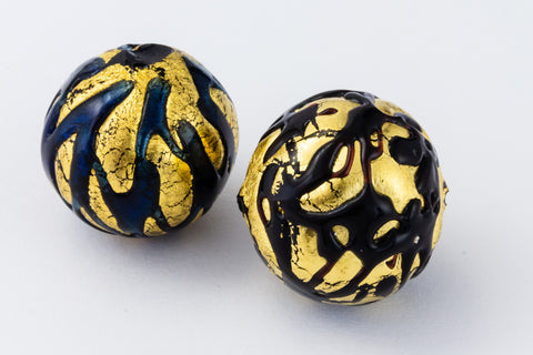 16mm Vintage Venetian Gold Foil Round Bead #XVB031