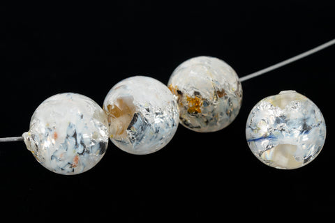 Vintage 12mm White/Peach/Silver Handmade Foil Bead #AHA006