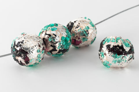 Vintage 12mm Seafoam/Black/Silver Handmade Foil Bead #AHC006