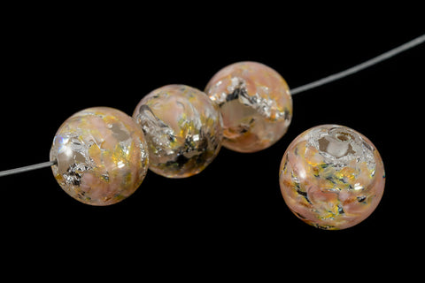 Vintage 12mm Rose/Peach/Silver Handmade Foil Bead #AHO006