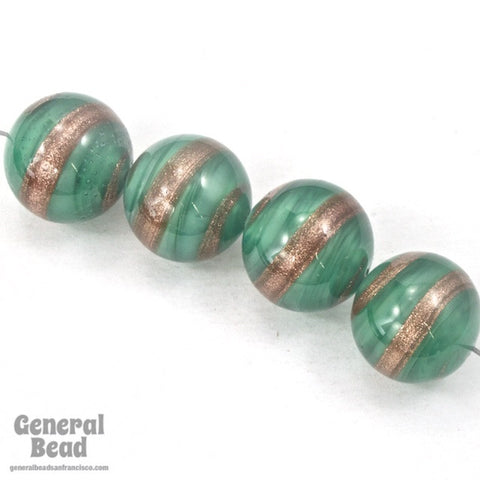 Vintage 14mm Jade/Bronze Swirl Lampwork Bead #HCA028