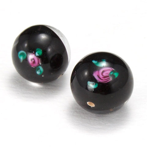 Vintage 14mm Black Floral Lampwork Bead #HCB005