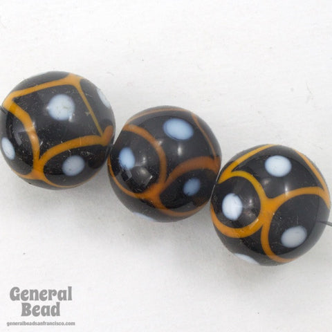 Vintage 16mm Black/White/Orange Lampwork Bead #HCB024