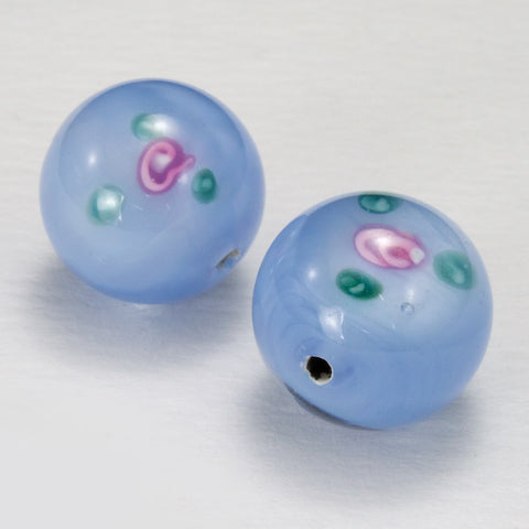 Vintage 14mm Light Blue Floral Lampwork Bead #HCC005