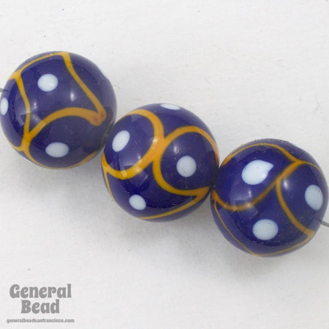 Vintage 16mm Cobalt/White/Orange Lampwork Bead #HCC024