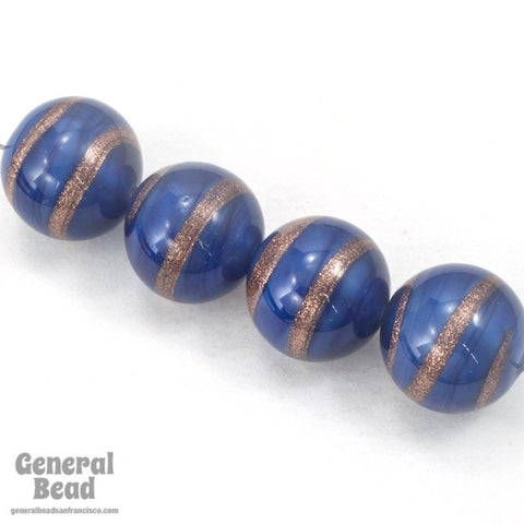 Vintage 14mm Blue/Bronze Swirl Lampwork Bead #HCC028