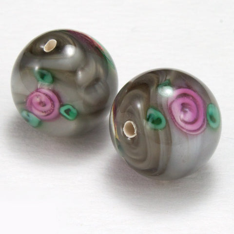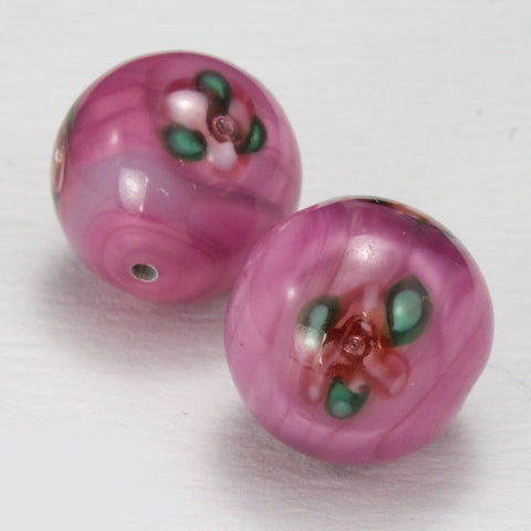 Vintage 14mm Pink Floral Lampwork Bead #HCD005