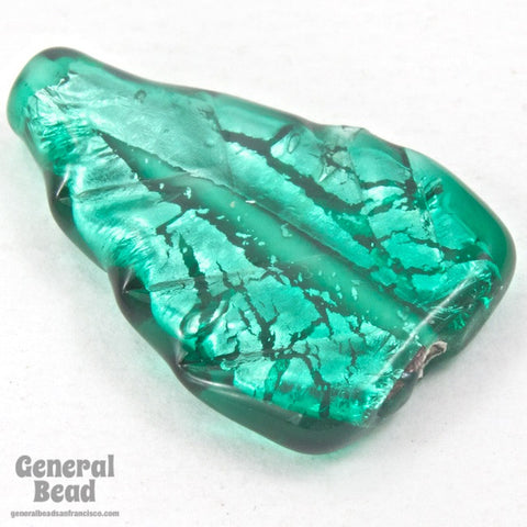 Vintage 15mm x 22mm Silver Foiled Teal Lampwork Leaf Bead #HCD060