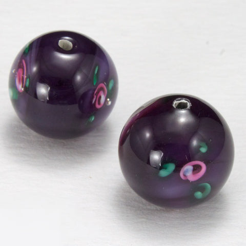 Vintage 14mm Purple Floral Lampwork Bead #HCE005