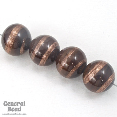 Vintage 14mm Brown/Bronze Swirl Lampwork Bead #HCF028