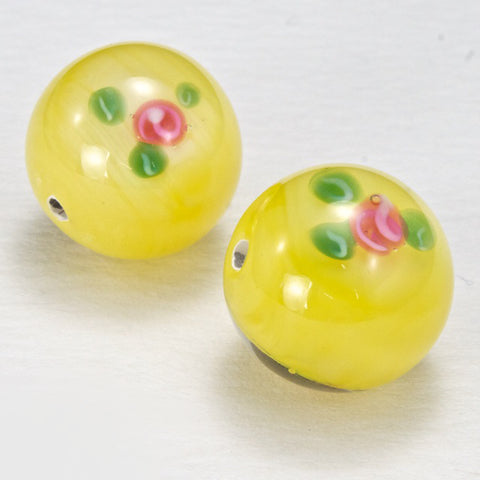 Vintage 14mm Yellow Floral Lampwork Bead #HCG005