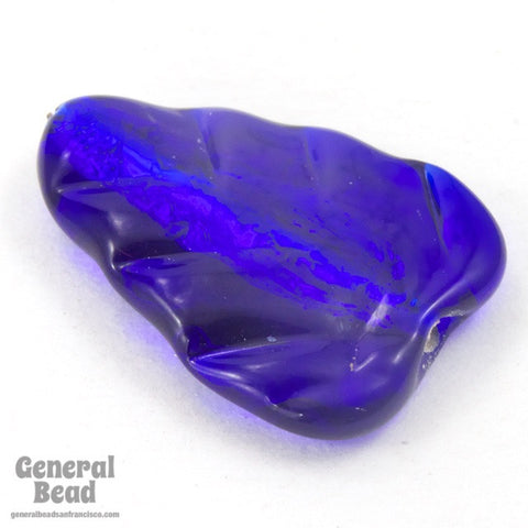 Vintage 15mm x 22mm Silver Foiled Cobalt Lampwork Leaf Bead #HCG060