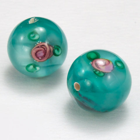 Vintage 14mm Seafoam Floral Lampwork Bead #HCI005