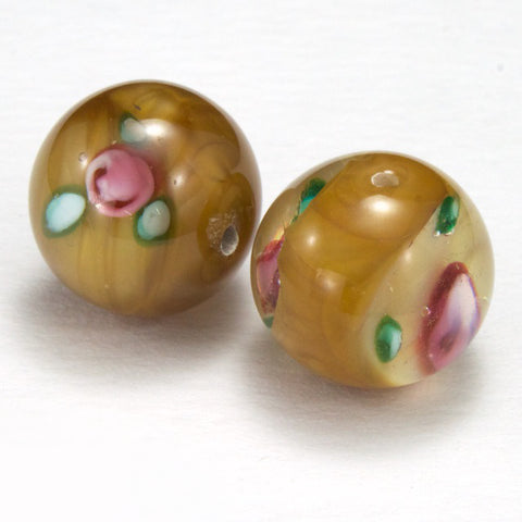 Vintage 14mm Light Brown Floral Lampwork Bead #HCK005