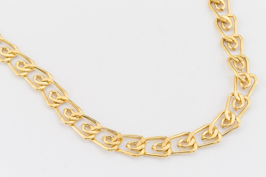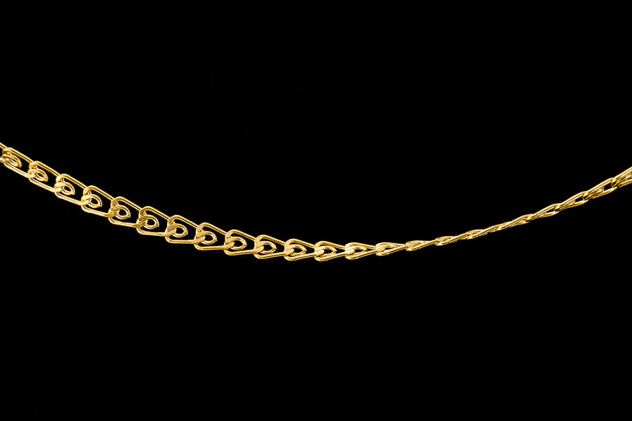 5.5mm x 4mm outer diameter scroll style chain, made with .6mm diameter wire. Current manufacture from the USA.