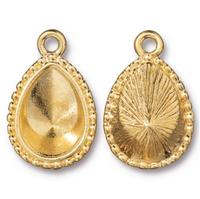 14.4mm x 22.2mm pear shape bezel setting with beaded border and radiant texture on back.