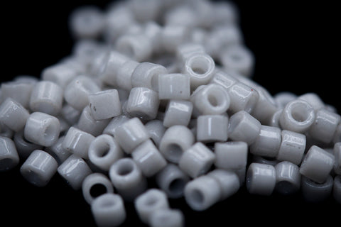 Size 11/0 Duracoat opaque dyed mist gray cylinder seed bead.