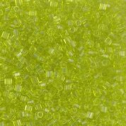 Size 10/0 transparent chartreuse hex cut cylinder seed bead.