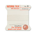 Silk pearl cord with attached wire needle for bead stringing.