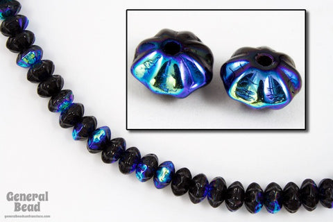 3mm x 6mm flower shape rondelle in jet black with iridescent sheen.