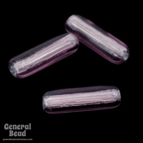 4mm x 14mm transparent amethyst smooth tube with lengthwise hole.