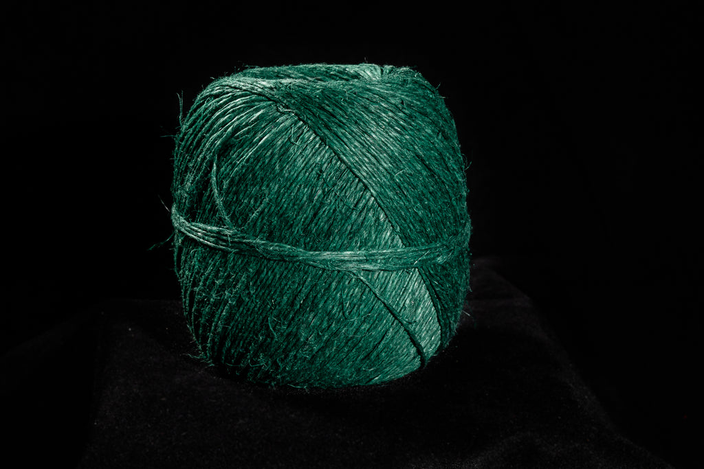 1mm diameter natural hemp cord dyed dark green.