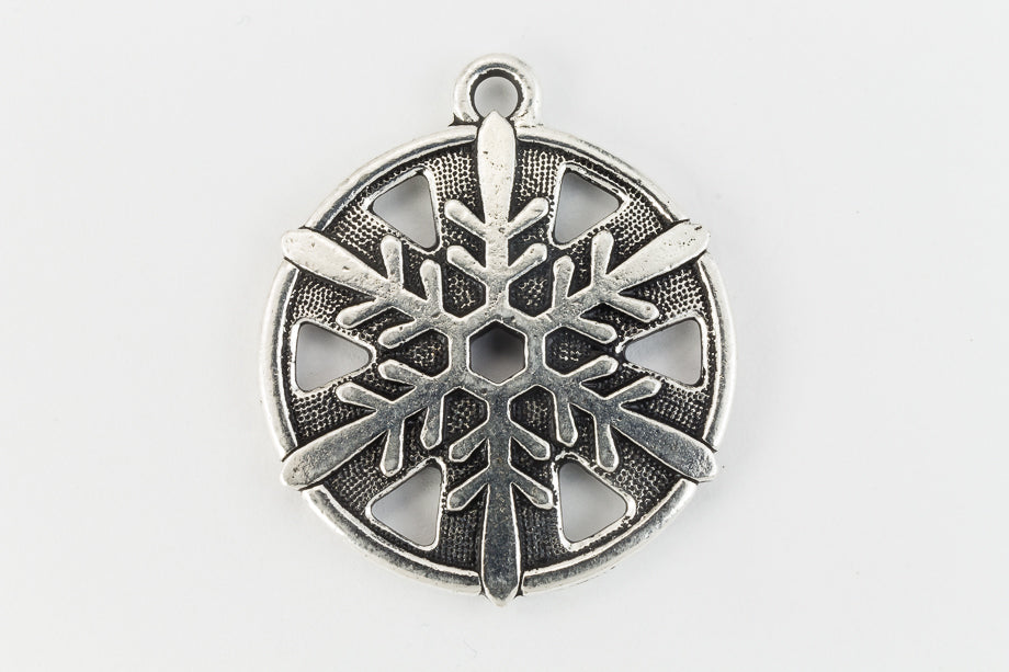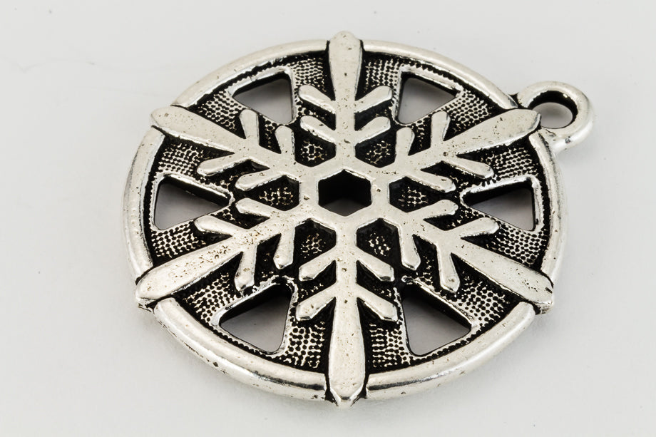 23.8mm x 19.4mm antique silver detailed snowflake with loop at top.