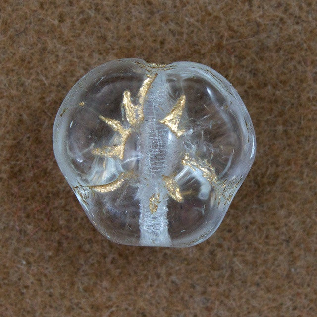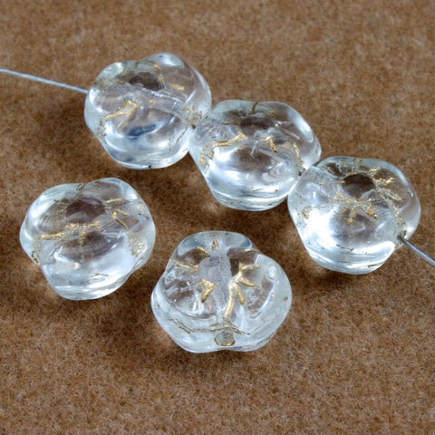 8mm crystal clear and gold Pansy flower with sideways hole.